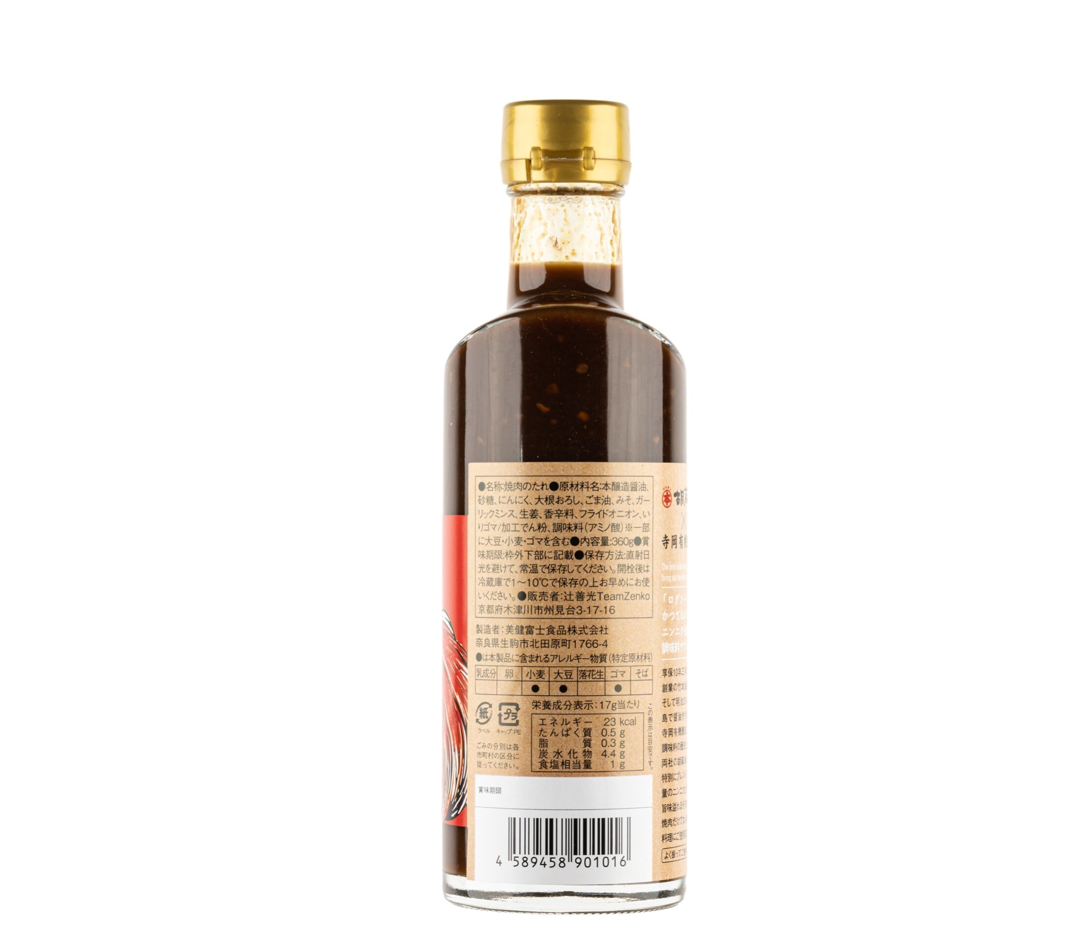 本醸造醤油、砂糖、にんにく、大根おろし、ごま油、みそ、ガーリックミンス、生姜、香辛料、フライドオニオン、いりゴマ / 加工でん粉、調味料(アミノ酸) ※一部に大豆・小麦・ゴマを含む